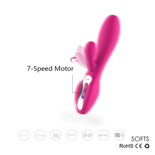 Este vibrador tipo Rabbit está diseñado para ofrecer una experiencia de doble estimulación clitoriana y vaginal, combinando placer interno y externo de manera simultánea o independiente, ya que cuenta con dos motores independientes, lo que permite personalizar la experiencia con distintas intensidades y patrones, desde estímulos suaves hasta más intensos, adaptándose a cada preferencia.